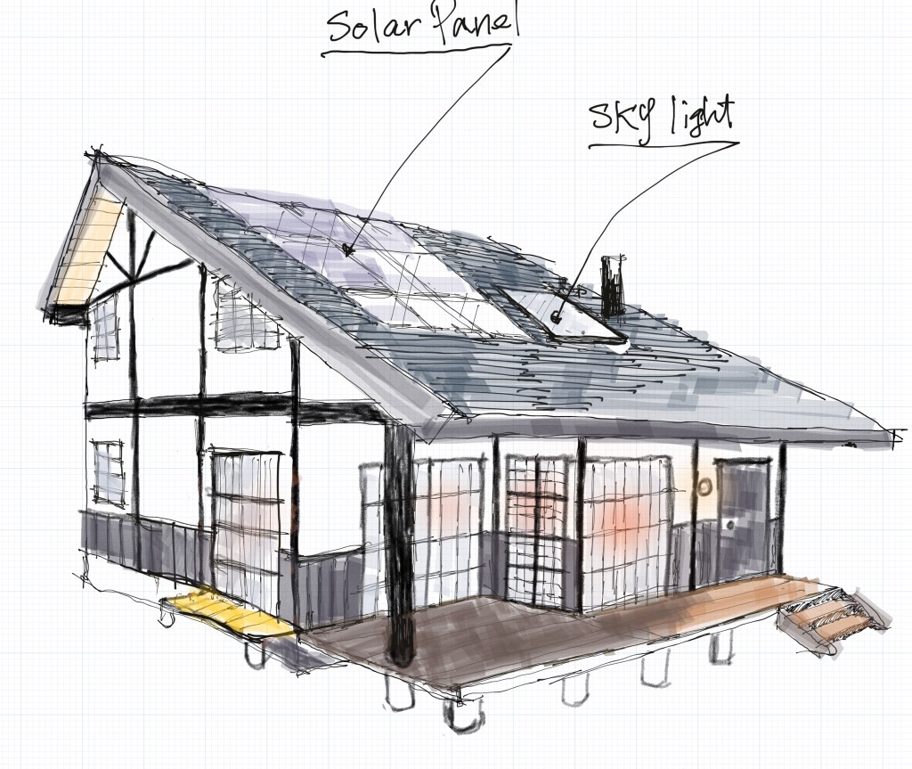 それだからこそ、「今度建てる家は、わたしたちの老後を過ごす最後の家になるのだから、建築会社の押し付けではなく、徹底的にこだわりたい」と強く思うようになりました。わたしと 家内は、ネットやインテリア雑誌などで好みの建築スタイルやデザインを探し、自分でエスキースやフロアプランを描き、お互いのイメージを何度も何度も話し合いました。二人の趣味を合わせると、わたしたちの好みは中世ヨーロッパで多く用いられていた木造建築工法のひとつティンバーフレーム工法で、古い田舎の農家の雰囲気を漂わす白い漆喰壁の小さな家なのでした。
