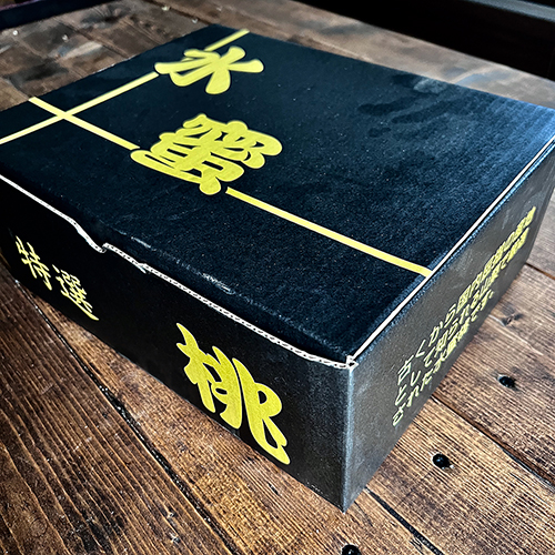 この日は、「うちの桃、今年の初物です」と、Kさんが笑顔で立派な箱に入った桃を手渡してくれました。「日川白鳳」という品種で、箱の横には「特選 桃」「古くから国内屈指の産地として知られる山梨で厳選された水蜜桃です」と黄色いインクで印刷されています。どうやらこれはKさん自慢の桃のようです。ありがとうございます。