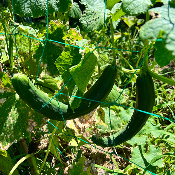 二日ぶりに畑に行くと、そこには緑の巨人軍団が待ち構えていたのです! 家内の腕ほどもある太さと長さのキュウリたち。もう一瞬、「これ、本当にキュウリ?」と目を疑うほどです。まるでキュウリの「超人ハルク」か「グリーン・ジャイアント」とでも言わんばかりの威圧感。しかも、その数が半端じゃなく、まさに数の暴力! わが家の冷蔵庫はすでにキュウリやトマト、ナスにレタスにインゲンなど自作の野菜たちに占拠されているというのに、さらに大量の緑の侵略者たちが押し寄せてきたのです。