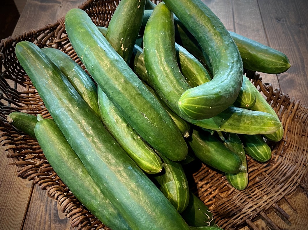 キュウリの原産地は、冷涼な気候のインド北西部ヒマラヤ山麓地帯で、生育適温は18~25℃といわれています。「黄瓜」が語源とされ、大きく完熟すると黄色くなるウリを未熟なうちに収穫したもの。「胡瓜」とも書きますが、「胡」は中国の西方を表し、古代シルクロードを経て伝来した「胡」の「瓜」という意味だそうです。日本では平安時代以前から栽培されてきたようです。